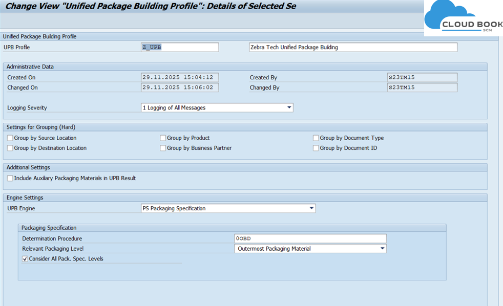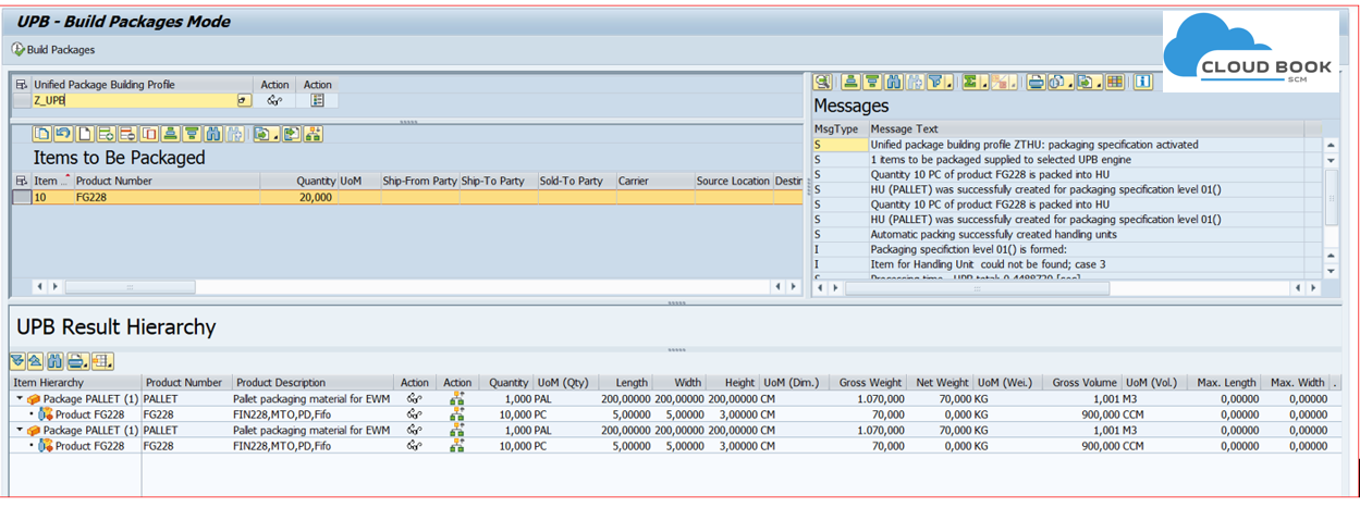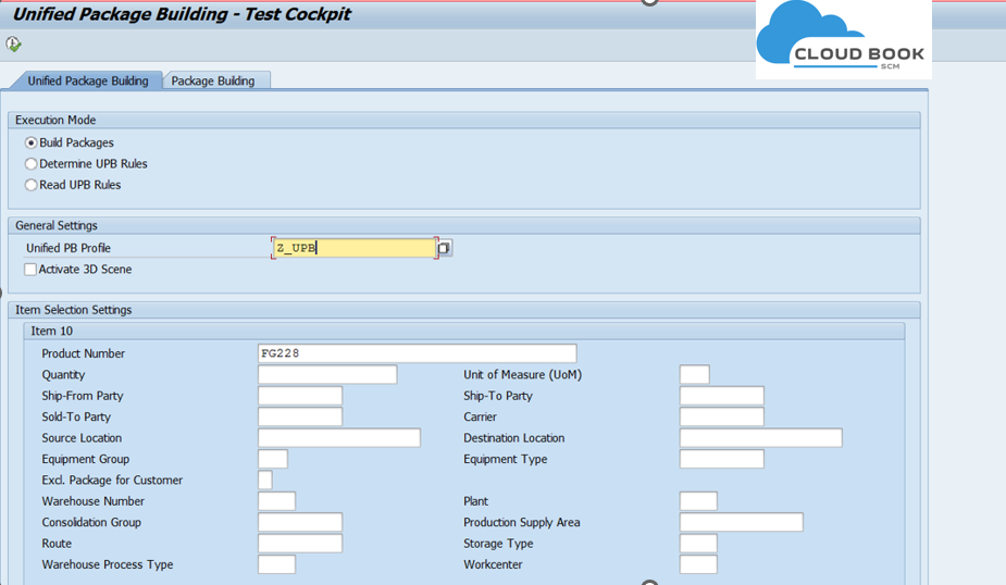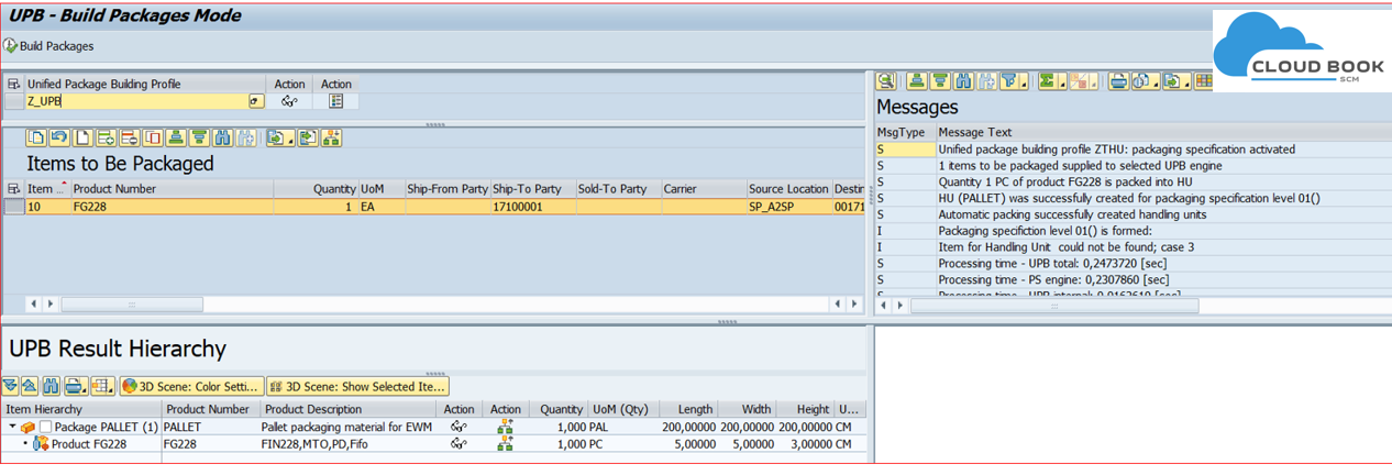 After the pack spec is created and UPB set up is done, a simulation transaction /SCMB/TEST_UPB can be executed to test if the setup is running fine.